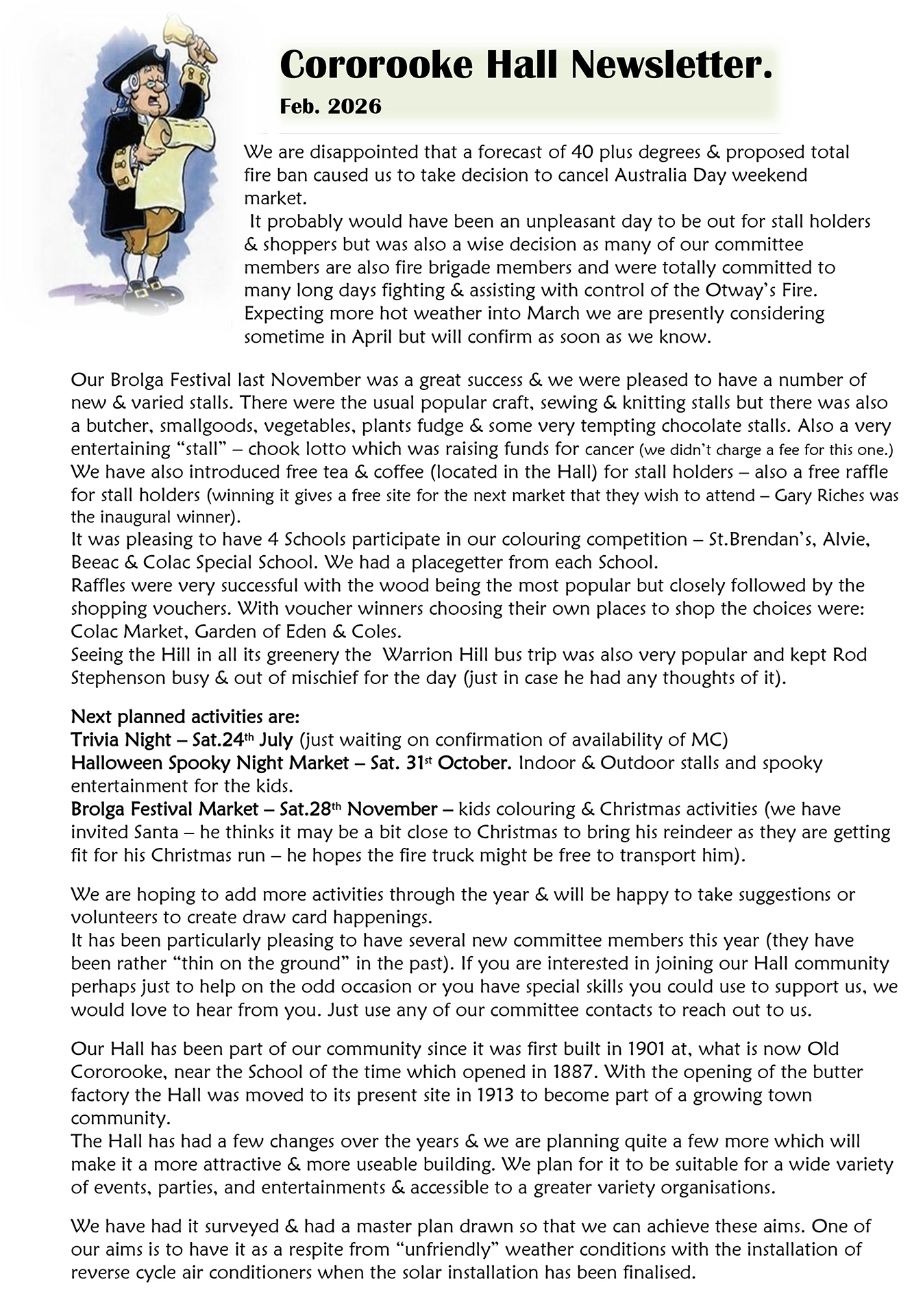 Hall Hire Contact: Cororooke General Store 5233 1266